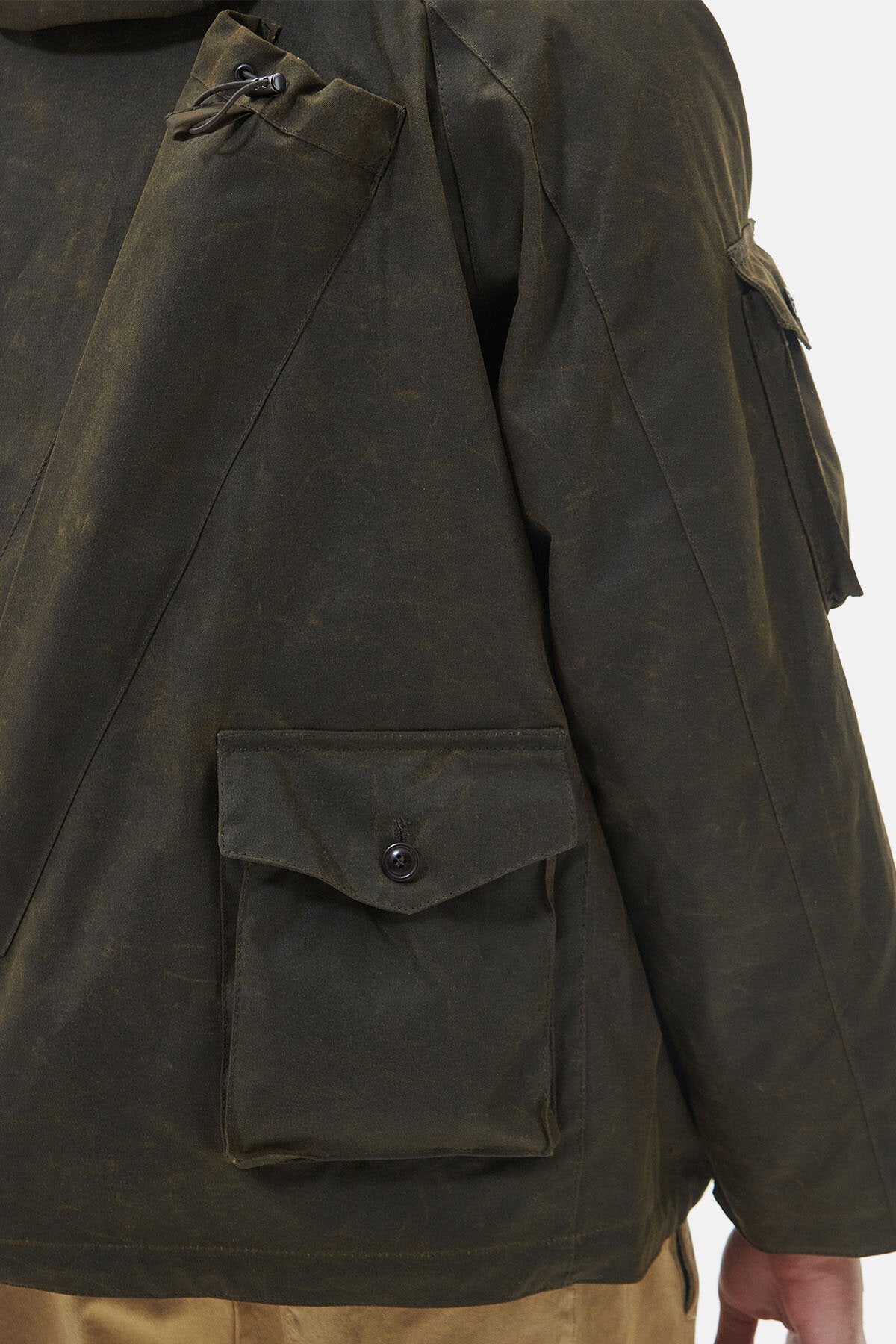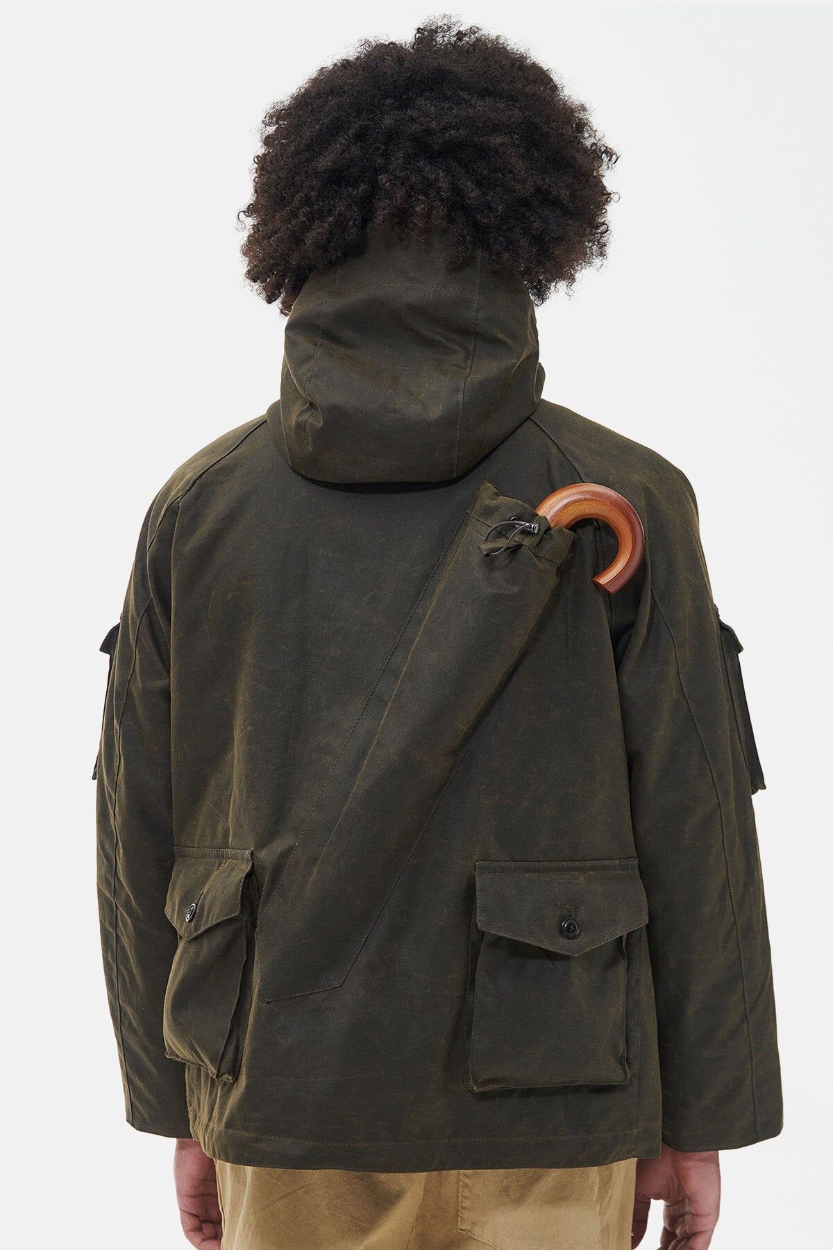Der Kreativdirektor Daiki Suzuki verleiht der Barbour Clayton Wax Jacke, deren Inspirationsquelle klassische Fischerjacken sind, einen besonderen persönlichen Touch. Diese Jacke aus gewachster Baumwolle (227 g) überzeugt mit einem wetterfesten Design und klassischen Raglanärmeln, die das Eindringen von Wasser durch die Nähte verhindern. Eine Vielzahl praktischer Taschen auf Vorder- und Rückseite bietet außerdem den passenden Platz für Werkzeuge und Geräte.