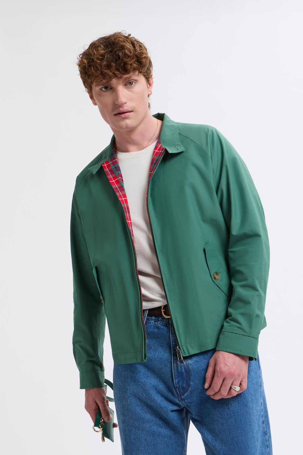 • Unser berühmter G4 Baracuta Cloth wurde aktualisiert und verfeinert, um der zweiten Ikone von Baracuta einen Hauch von Stil und Funktionalität zu verleihen. Das neue Modell verfügt über Raglanärmel wie bei der klassischen G9 und eine weichere Passform, die die Jacke noch bequemer macht. Die elastischen Rippbündchen in der Taille und an den Ärmeln wurden durch verstellbare Knopfleisten an den Seiten und an den Ärmeln ersetzt. Aber keine Sorge, andere Originalmerkmale des G9 wurden beibehalten - wie der Stehkragen, die Schirmrückenpasse und unser charakteristisches Fraser-Tartan-Futter. Lassen Sie Ihren inneren Briten raus und gehen Sie stilvoll in unserem G4. Kombinieren Sie ihn mit unserem gestrickten Rundhalspullover für zusätzliche Wärme, wenn Sie mit Ihren Freunden durch die Stadt ziehen. Made in the UK.
