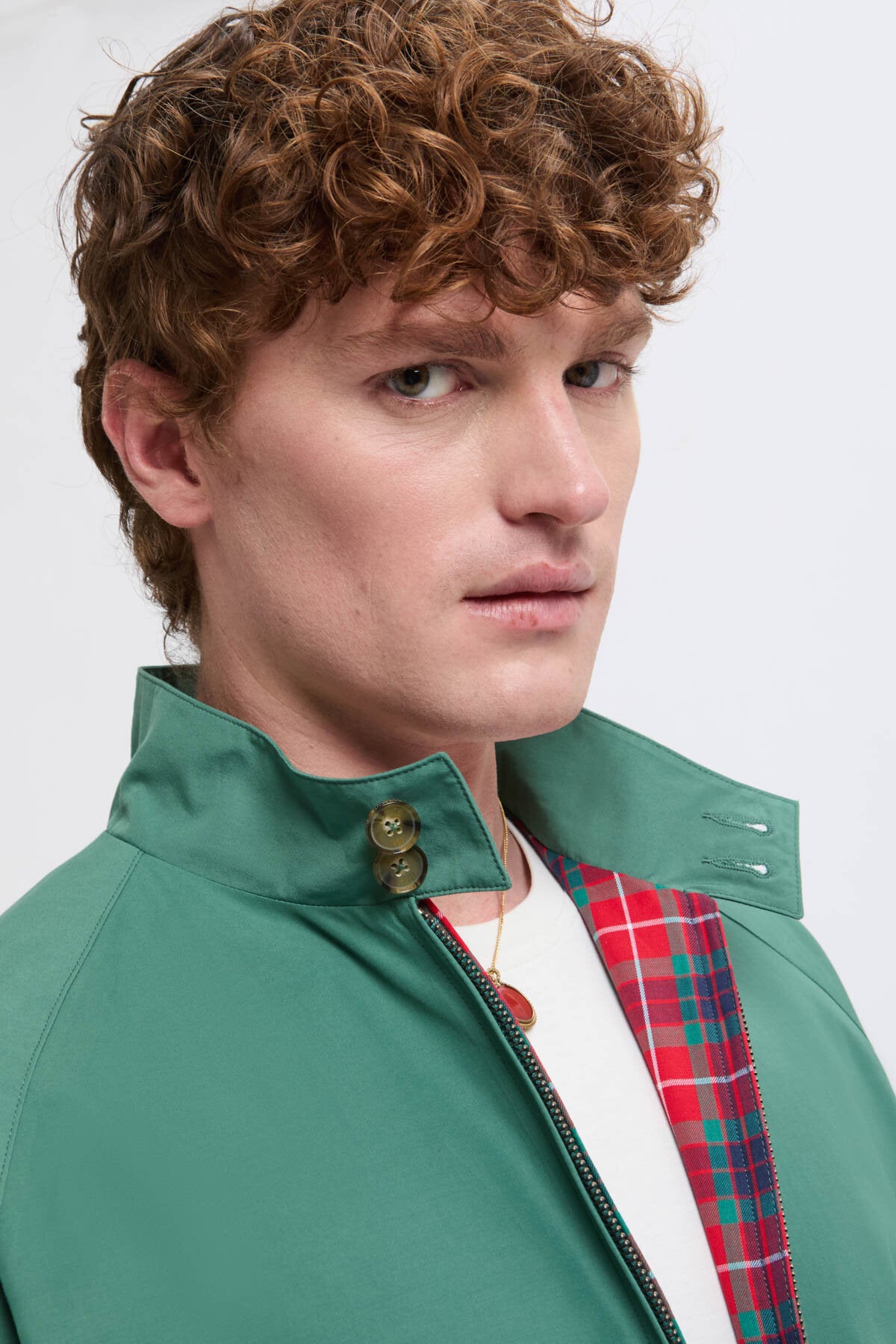 • • Ton-in-Ton-Baracuta-Kragen mit zwei Knöpfen