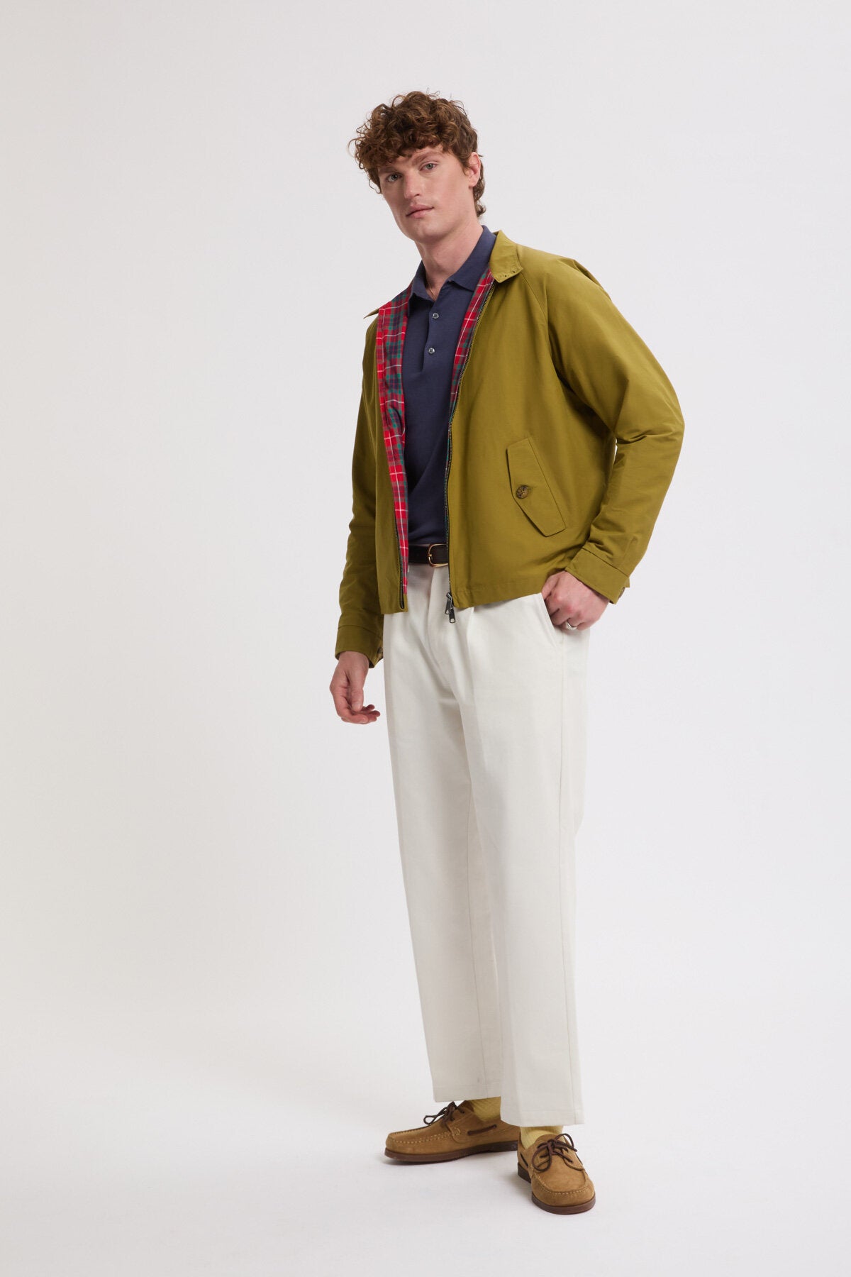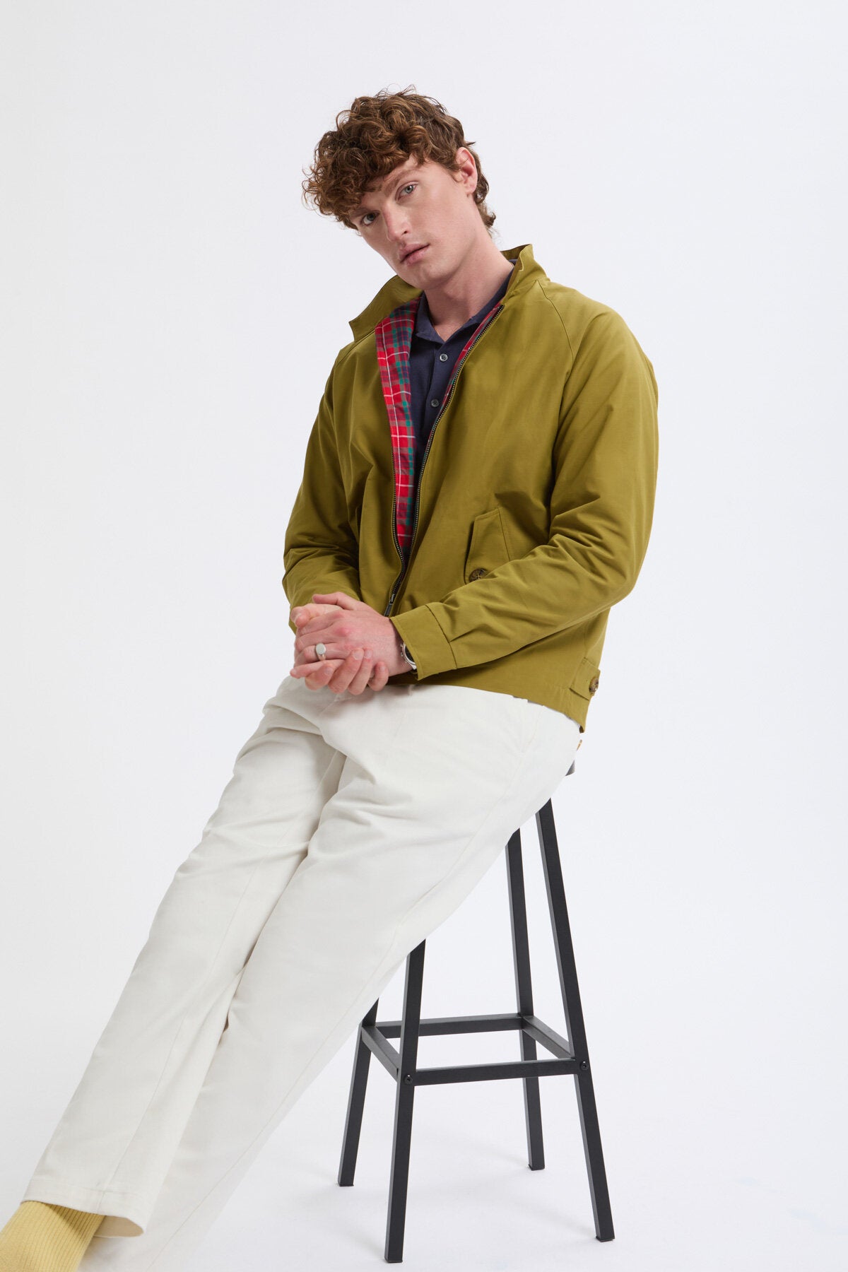 • Unser berühmter G4 Baracuta Cloth wurde aktualisiert und verfeinert, um der zweiten Ikone von Baracuta einen Hauch von Stil und Funktionalität zu verleihen. Das neue Modell verfügt über Raglanärmel wie bei der klassischen G9 und eine weichere Passform, die die Jacke noch bequemer macht. Die elastischen Rippbündchen in der Taille und an den Ärmeln wurden durch verstellbare Knopfleisten an den Seiten und an den Ärmeln ersetzt. Aber keine Sorge, andere Originalmerkmale des G9 wurden beibehalten - wie der Stehkragen, die Schirmrückenpasse und unser charakteristisches Fraser-Tartan-Futter. Lassen Sie Ihren inneren Briten raus und gehen Sie stilvoll in unserem G4. Kombinieren Sie ihn mit unserem gestrickten Rundhalspullover für zusätzliche Wärme, wenn Sie mit Ihren Freunden durch die Stadt ziehen. Made in the UK.