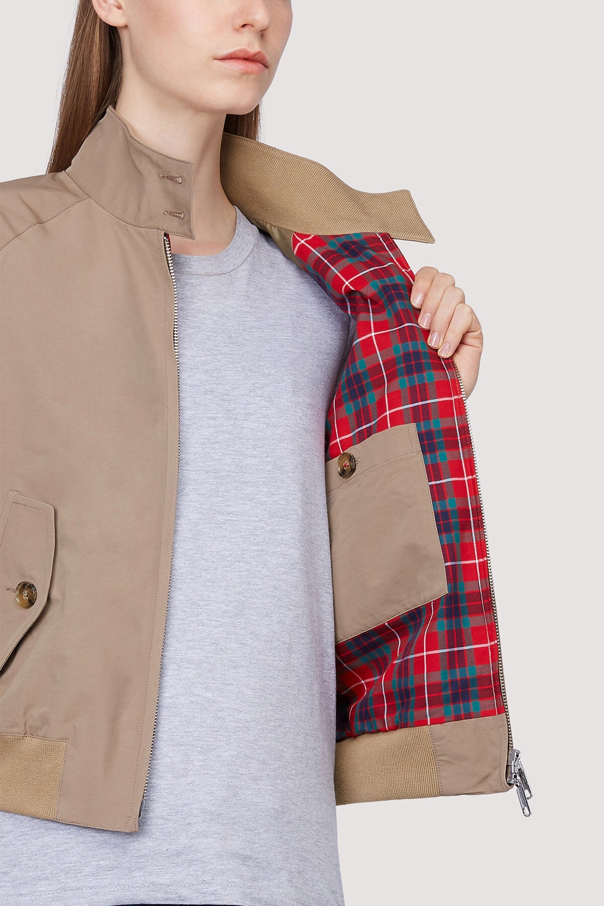 • Die unverwechselbare kultige Jacke Baracuta G9 Slim für Damen verkörpert zeitlosen Stil und unterstreicht das Modebewusstsein der modernen Frau gekonnt. Diese im Vergleich zu anderen Modellen schmaler geschnittene Version behält die charakteristischen Merkmale der G9 wie Fraser-Tartan-Futter, Regenschirm-Rückenpasse und Stehkragen bei. Egal ob im Großstadtdschungel oder bei einem Ausflug aufs Land, die G9 Slim für Damen ist das perfekte Streetstyle-Stück – ein absolutes Must-have in jeder Garderobe und jeder Saison.