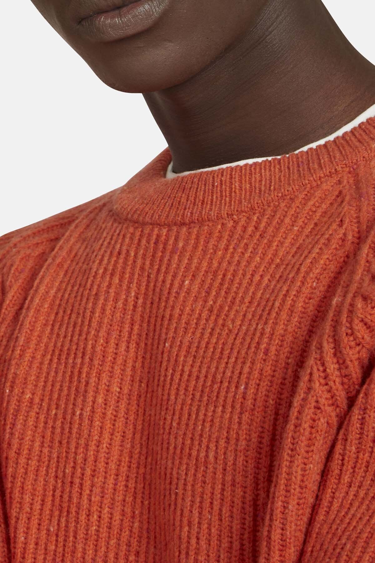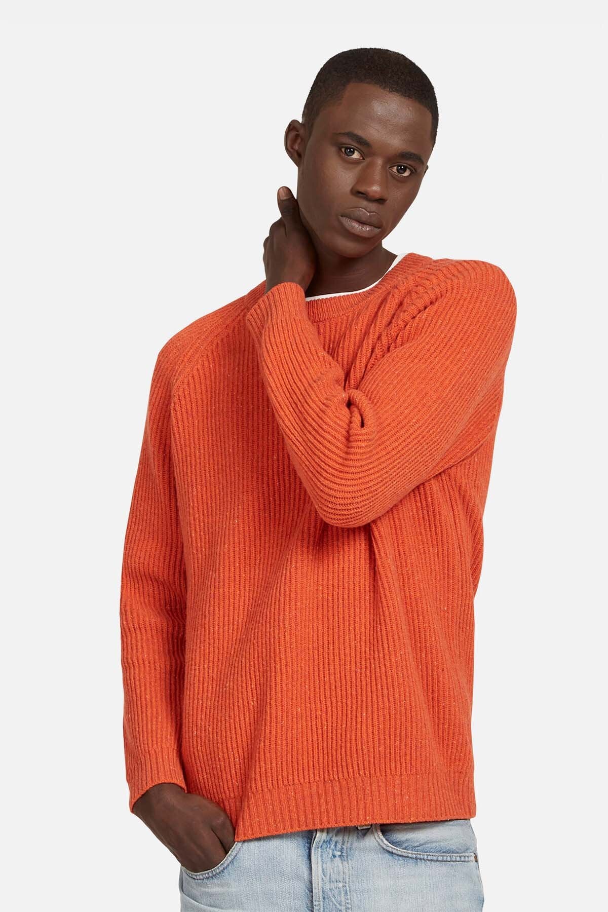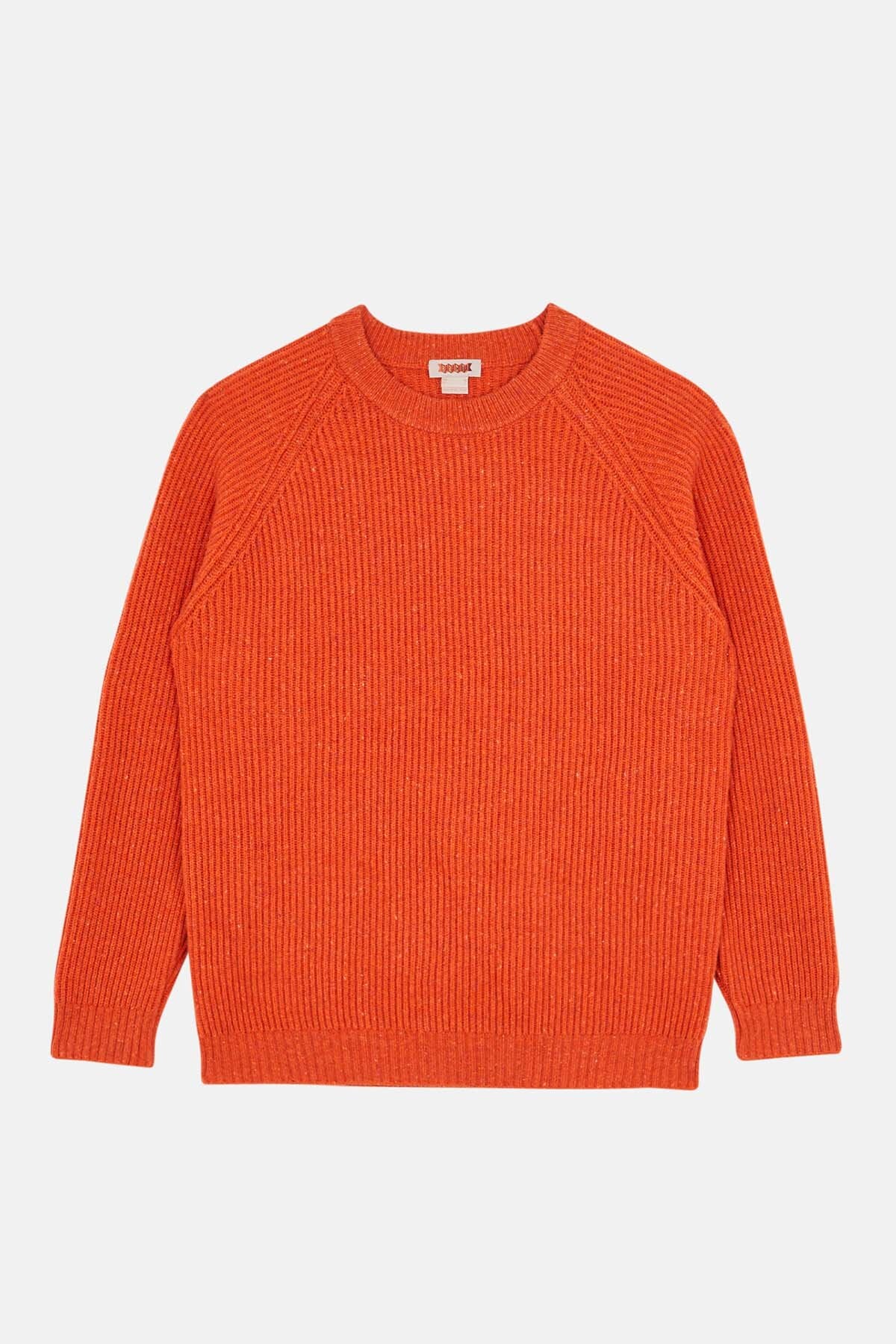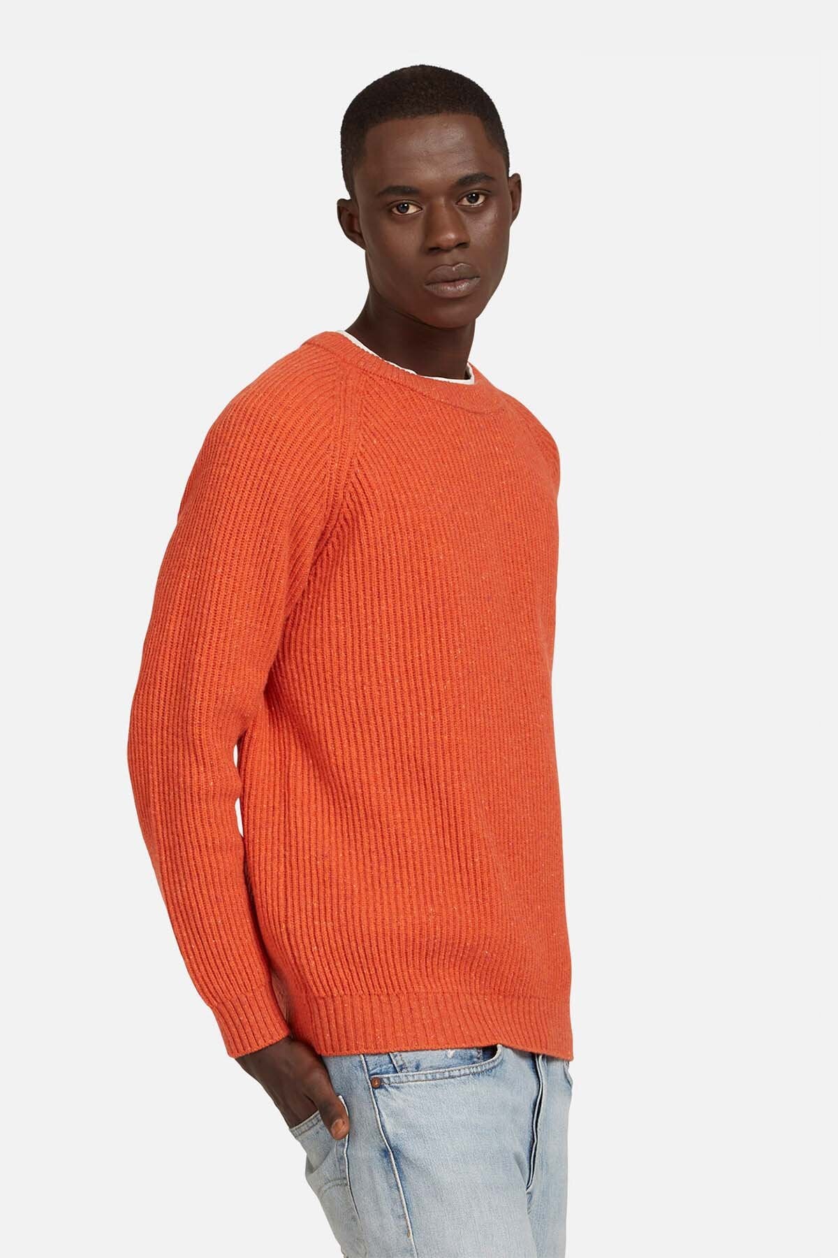 • If you are searching for a soft jumper this season we've got you covered. Inspired by Irish coastal fishermen in the Aran Islands and Donegal, the Fisherman Crew Neck is a jumper made from recycled wool. The English rib knit is a reversible pattern that creates a thick fabric giving volume and elasticity to the yarn. The crew neck and raglan sleeves make this garment comfortable and functional. Pair it with our G12 Coat or Charles Parka. Made in Italy.