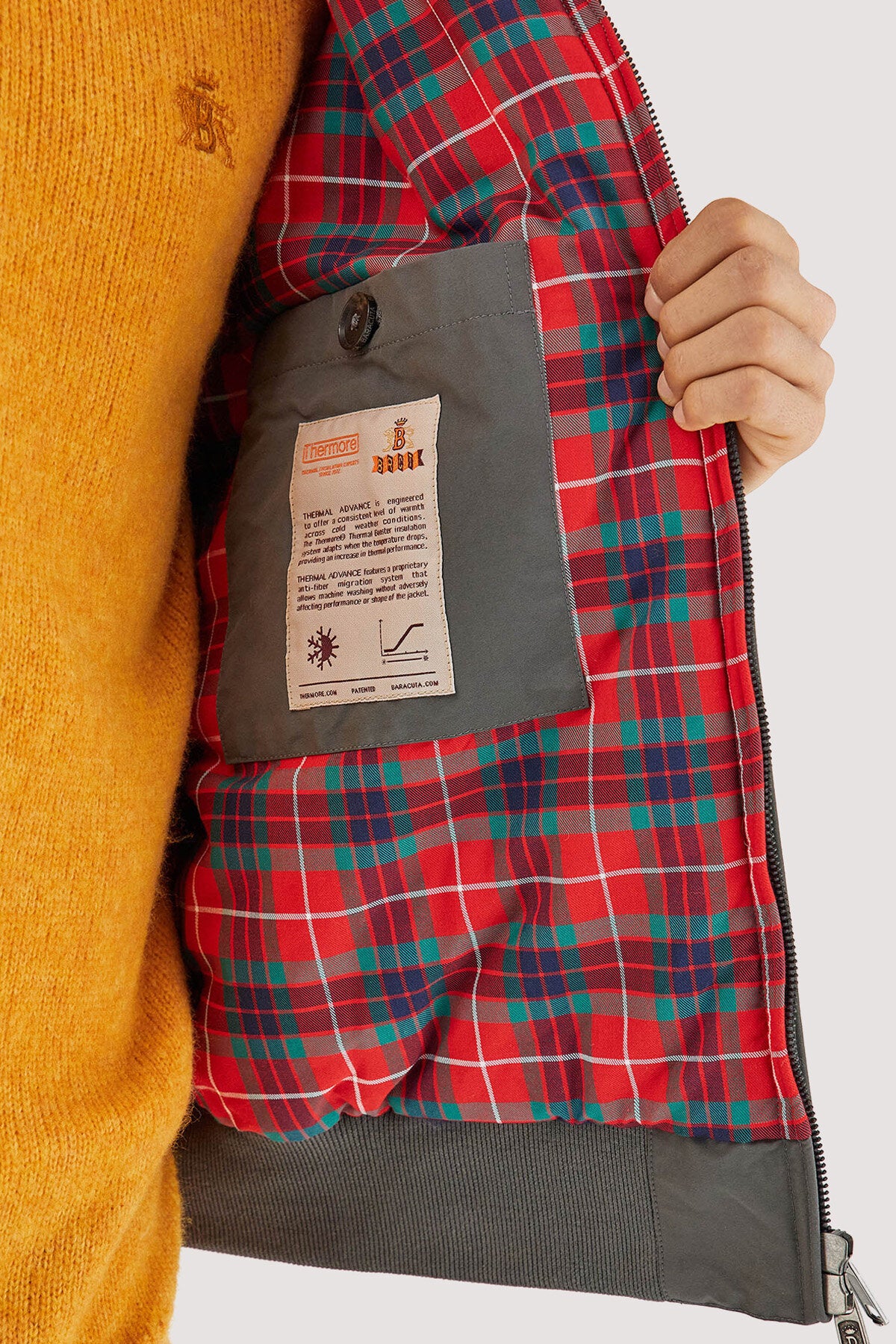 Dites adieu au froid cet hiver avec notre veste G9 Thermal. La plus lourde des G9 à ce jour, la G9 Thermal est idéale par temps glacial. Elle conserve les éléments distinctifs de notre veste G9 Harrington culte, notamment la doublure emblématique en Fraser Tartan, le col montant à deux boutons et l’empiècement dos en forme de parapluie. La G9 Thermal est cependant dotée d’un rembourrage Thermore® Booster, gage d’un maximum de protection contre le froid quand les températures chutent. Affrontez l’hiver avec style en sachant que vous pouvez compter sur cette veste douillette et confortable qui vous gardera bien au chaud.