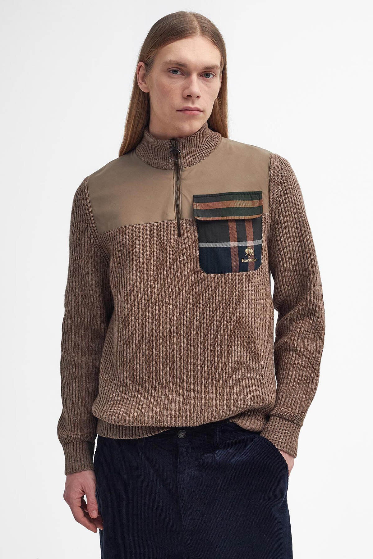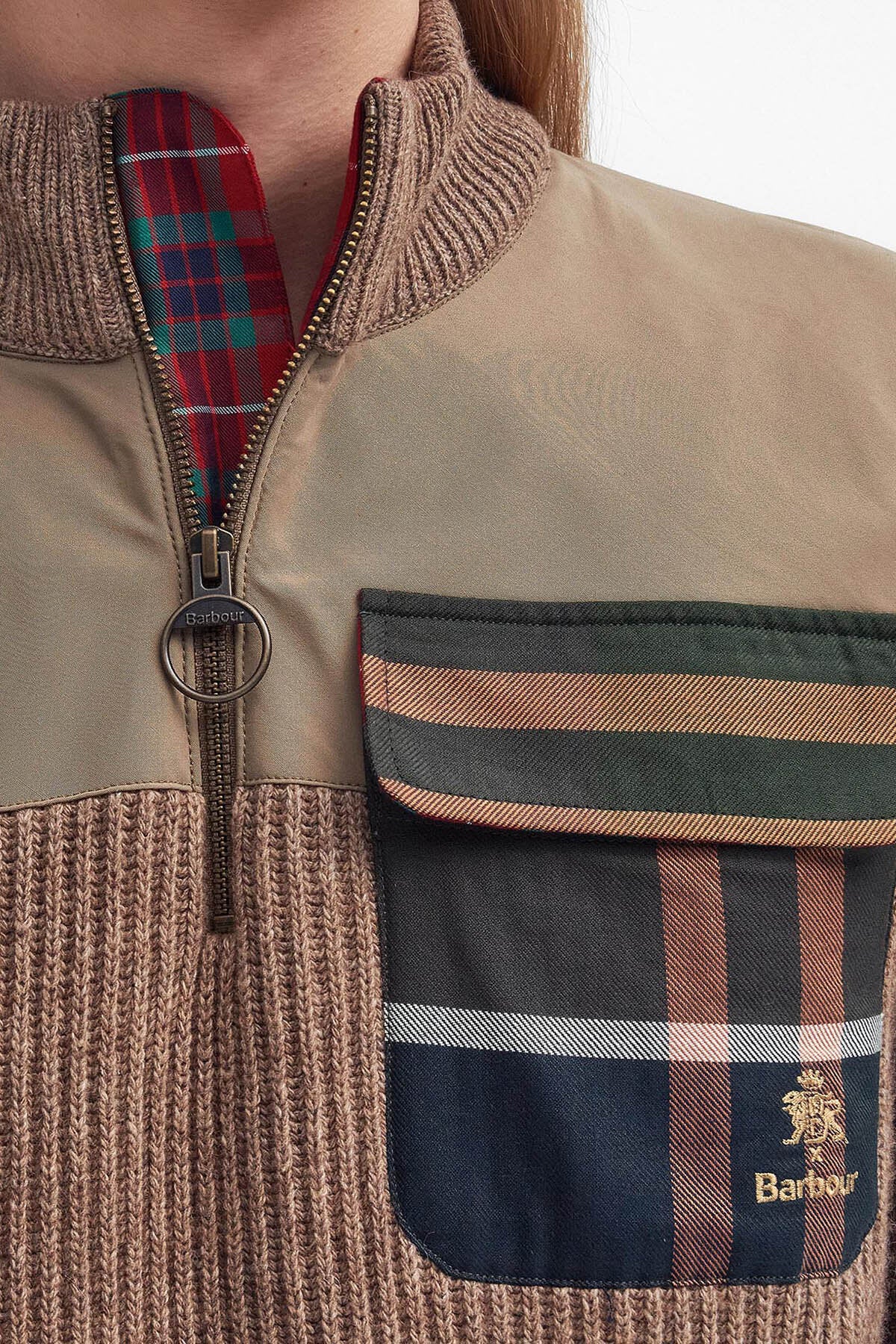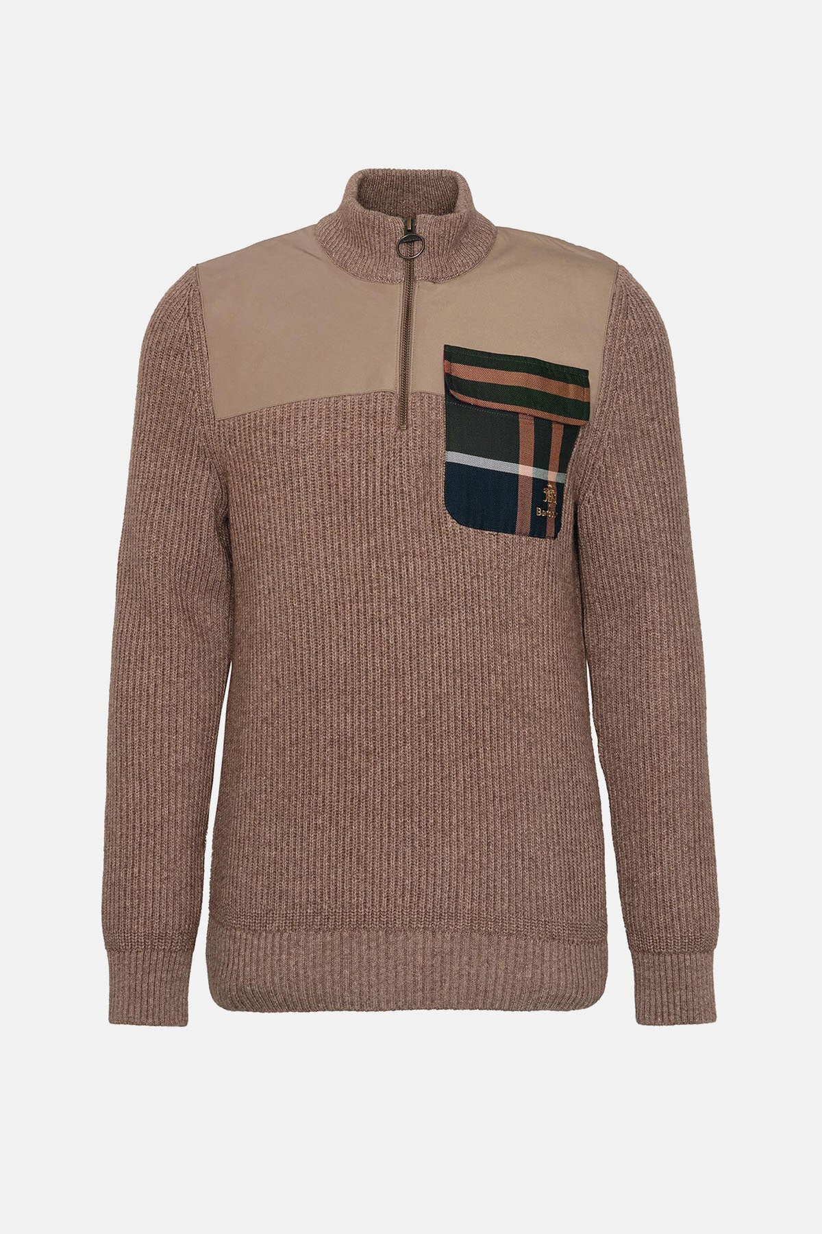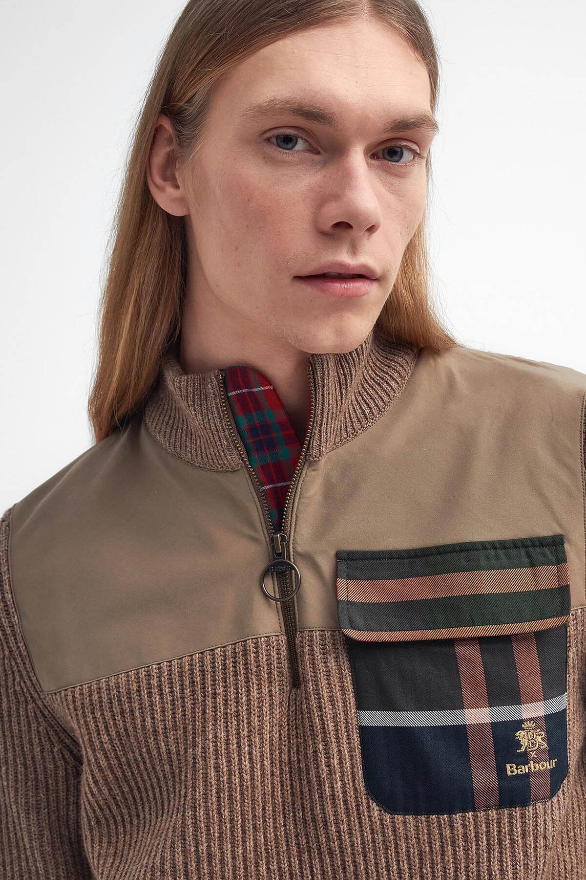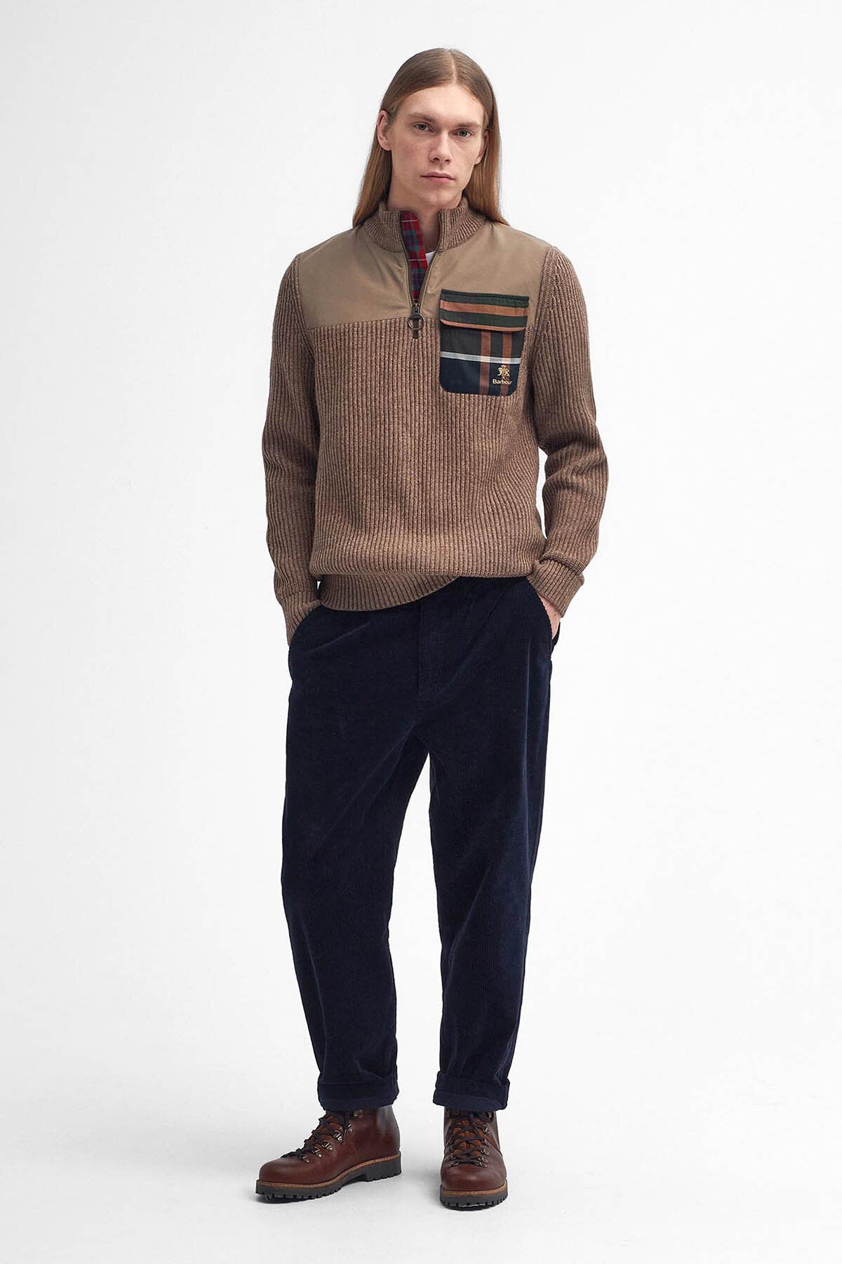 Il maglione con zip corta Miller Barbour x Baracuta ha un design semplice, ma cattura l'attenzione con l'originale tasca in tartan sui due lati. Sebbene sia conosciuto come brand del nord-est dell'Inghilterra, con sede a South Shields, Barbour affonda le proprie radici al confine con la Scozia, nella città di Dumfries. Il classico motivo tartan, che rende unico l'esterno della tasca di questo modello in misto lana e cotone, ne riprende le origini scozzesi e viene riproposto anche nella fodera e nelle finiture di alcuni dei design più esclusivi del brand. La fodera della tasca presenta invece il Fraser Tartan di Baracuta, le cui radici scozzesi risalgono addirittura al 13° secolo. Nel 1938, il 25° capogruppo del Clan Fraser di Lovat cedette a Baracuta i diritti del proprio tartan di famiglia, che venne così usato per i tocchi finali della prima e leggendaria giacca Harrington G9. Incontrandosi in questo semplice maglione con zip corta, i due tessuti raccontano la storia della tradizione che accomuna entrambi i brand.