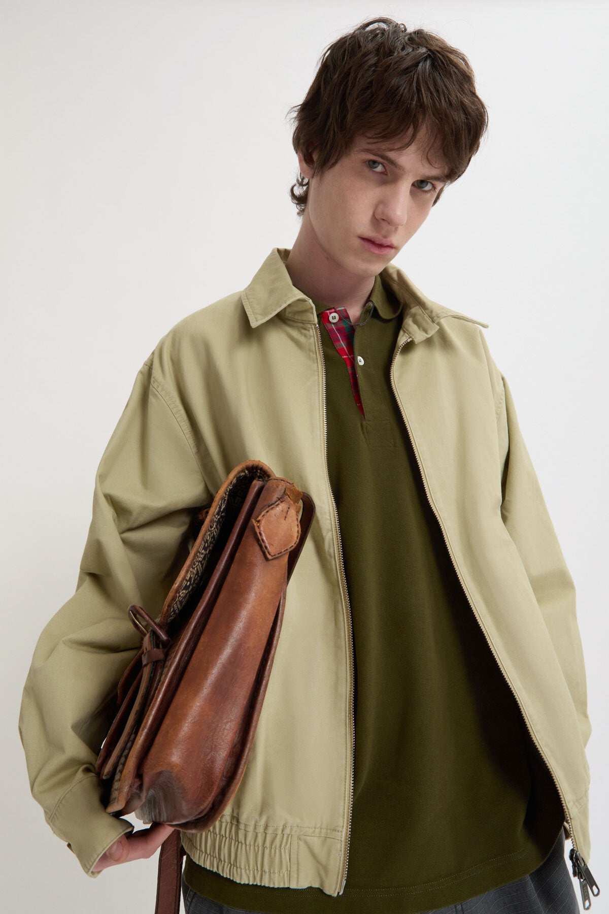 • • Chiusura a zip frontale con doppio cursore