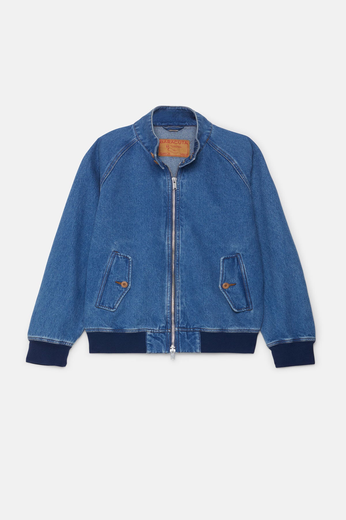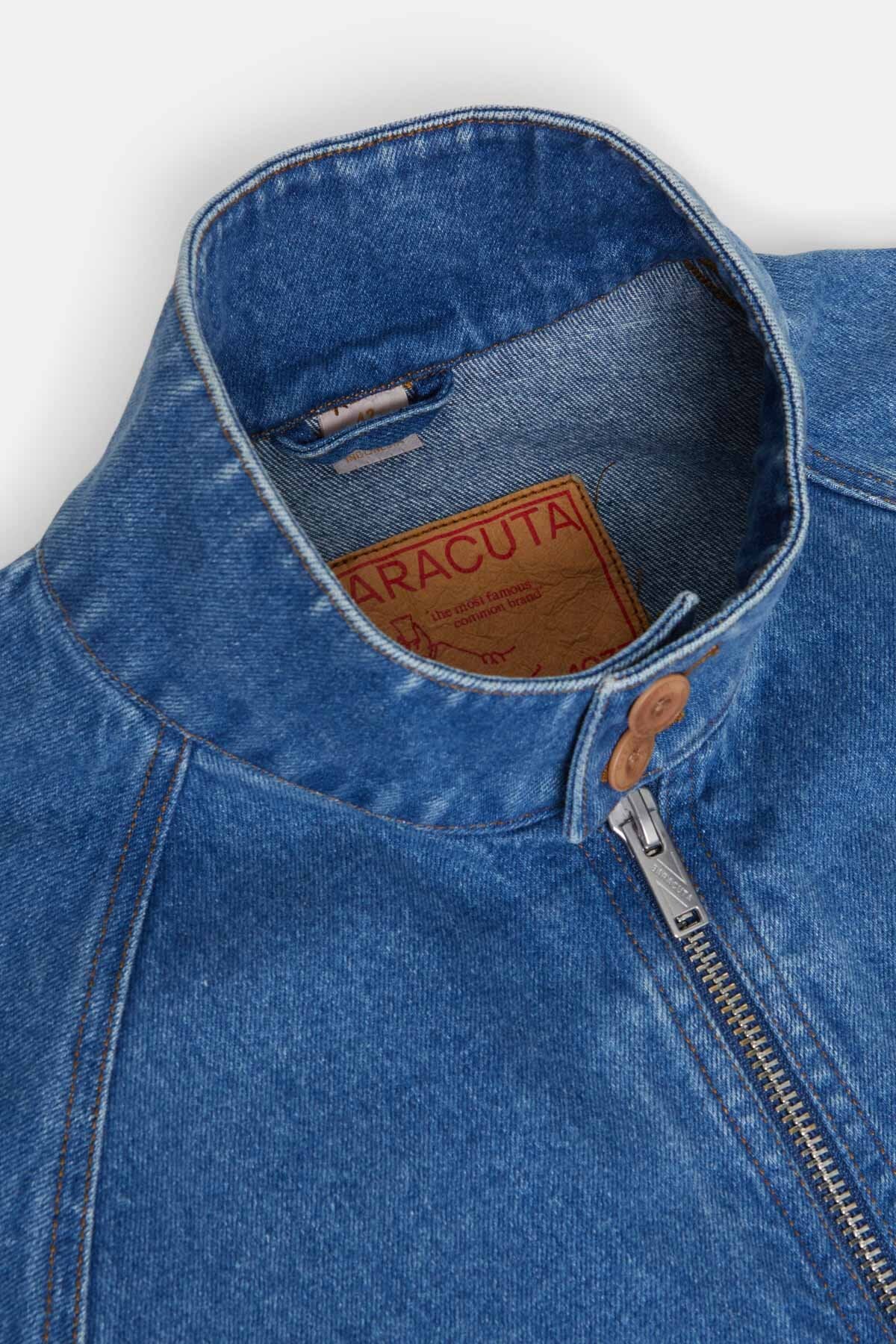 Realizzato in robusto denim, il G9 Denim ripropone in versione più casual l’iconico modello di Baracuta. Il capospalla conserva tutti gli inconfondibili dettagli di Baracuta e presenta uno spallone con motivo ad ombrello pronunciato, un collo in piedi a coste sottili con chiusura a doppio bottone e una chiusura a zip con doppio cursore. Questo modello è rifinito dall'iconica etichetta “The Most Famous Common Brand” che lo rende davvero originale!