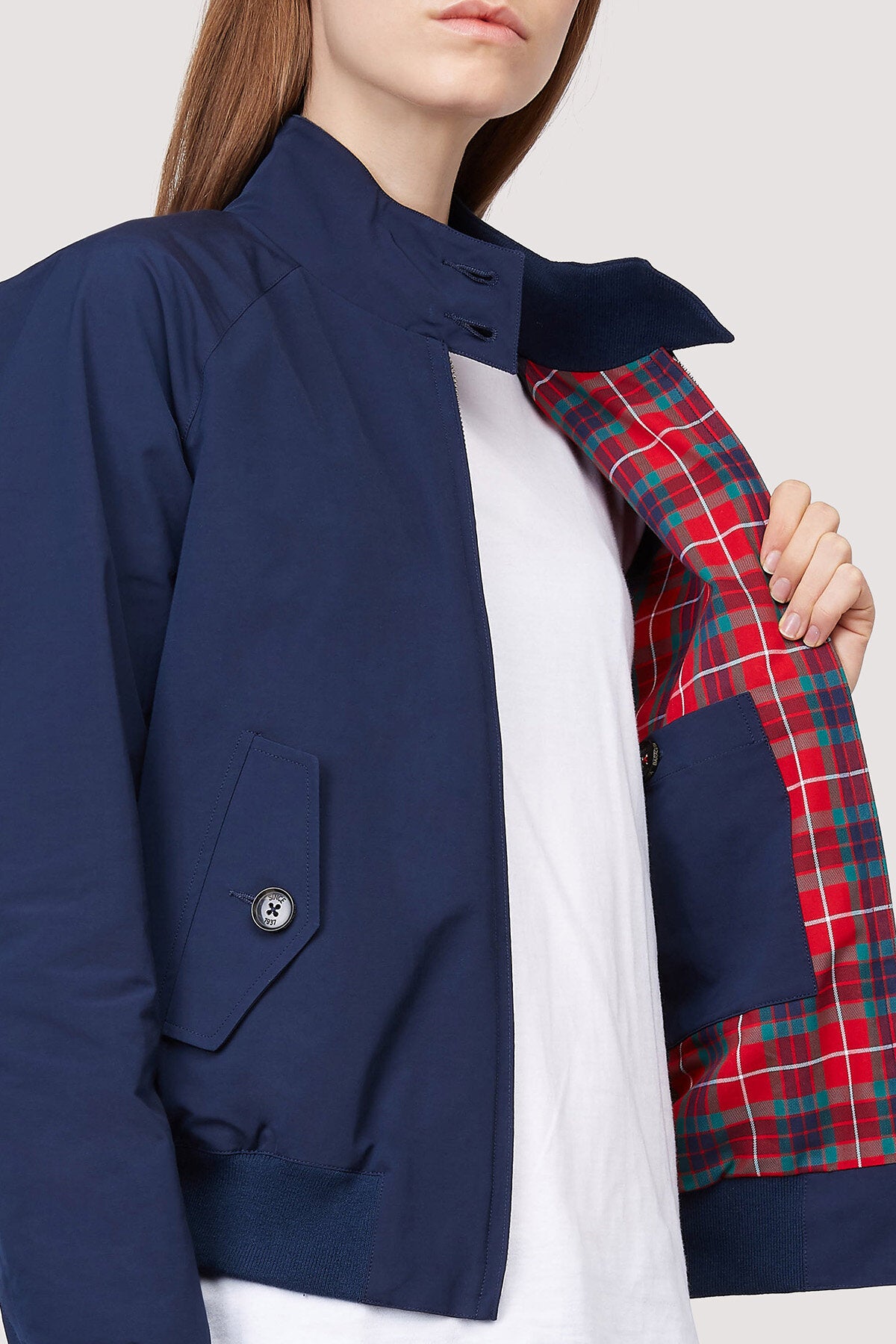 • Il G9 Donna Slim di Baracuta incarna la quintessenza dello stile senza tempo proponendo una giacca inconfondibile e iconica, ideata per una donna moderna, sempre al passo con le ultime tendenze moda. Questo design, dalla vestibilità leggermente più aderente rispetto agli altri modelli, conserva le caratteristiche distintive del G9, come la fodera Fraser Tartan, lo spallone con motivo a ombrello e il collo in piedi. Che si tratti di girare in città o di avventurarsi in campagna, il G9 Donna Slim è un capo in perfetto stile streetwear, un capo immancabile nel tuo guardaroba stagione dopo stagione.