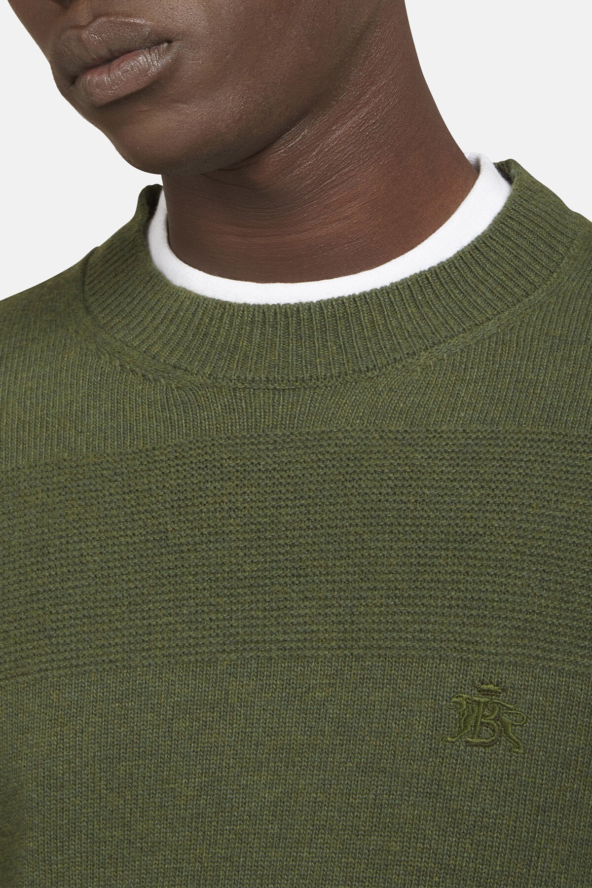 Da sempre il rispetto dell'ambiente è per noi un tema fondamentale e ci impegniamo costantemente per diventare più sostenibili. Proprio per questo, abbiamo deciso di realizzare questo maglione girocollo in lana e cachemire riciclati. Grazie al particolare processo di realizzazione, questo maglione si caratterizza per un'elasticità e una morbidezza straordinarie. Con ottime caratteristiche tecniche, è resistente e al tempo stesso molto confortevole. Il capo è impreziosito dal logo Baracuta tono su tono. Può essere abbinato alla giacca cerata Terence nelle giornate più umide e ventose, oppure al G9 Harrington Jacket quando il clima diventa più mite.