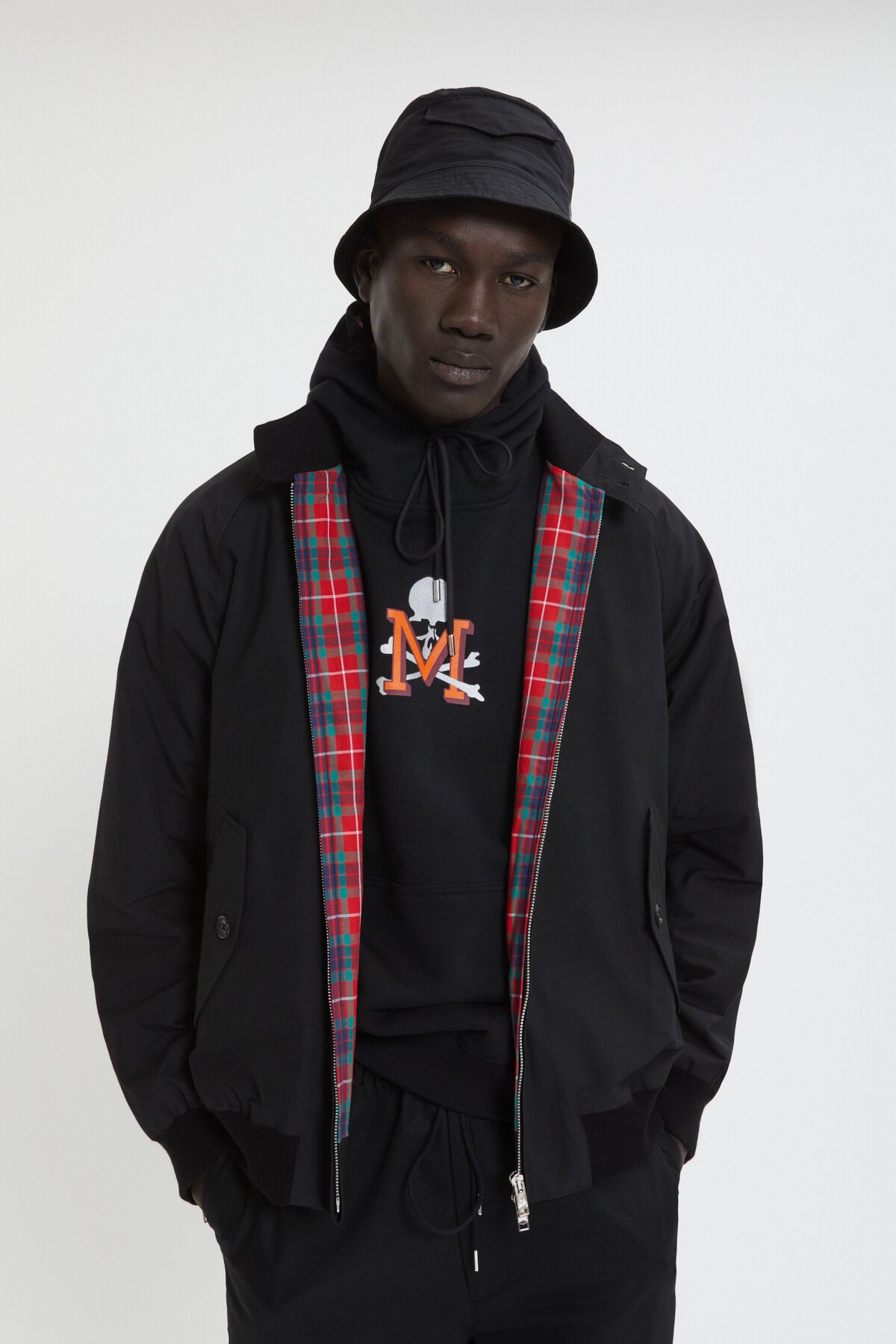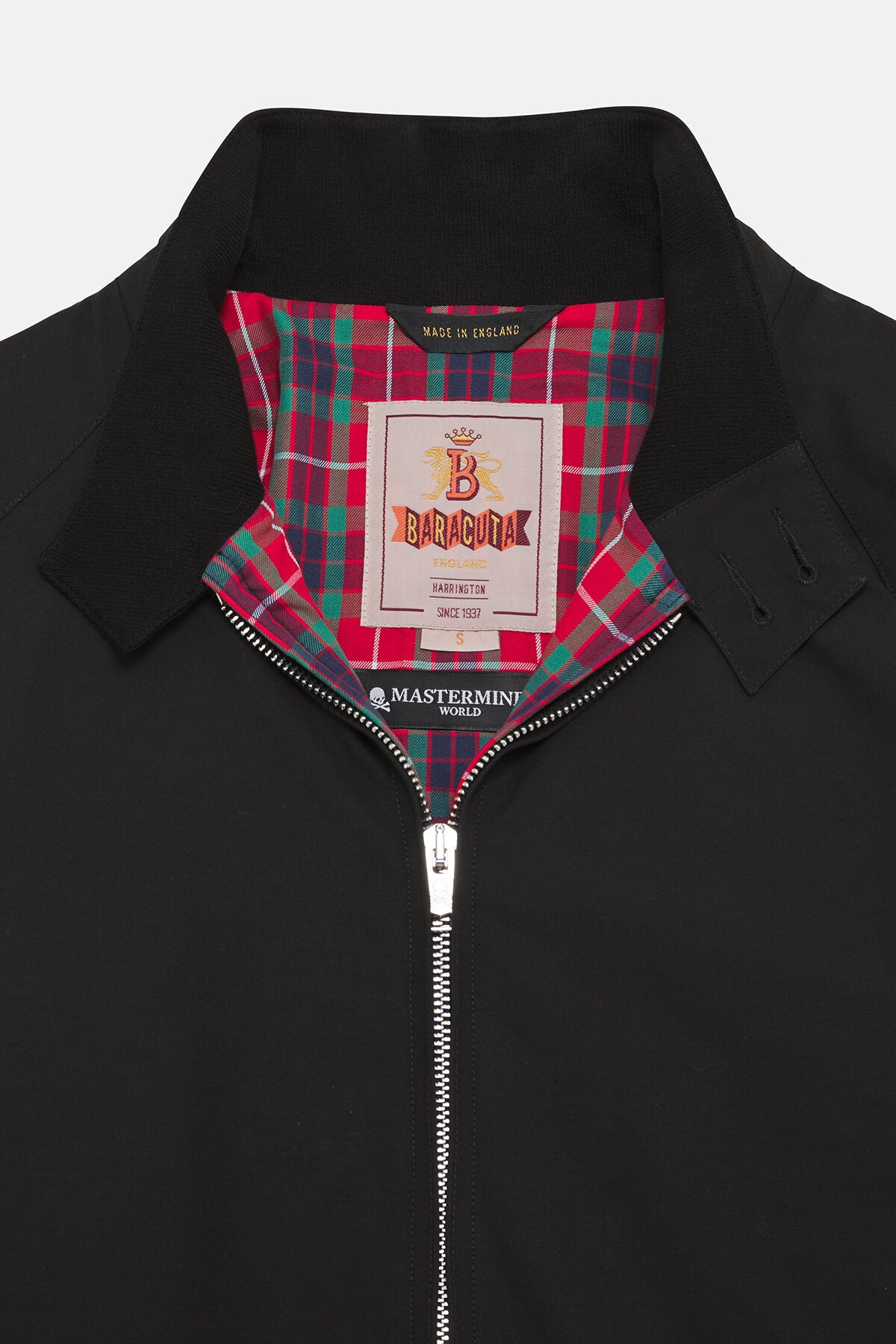 • Mastermind e Baracuta si alleano di nuovo per una straordinaria collaborazione con la giacca G9 di Mastermind. Mastermind ha preso l'iconica giacca G9 di Baracuta e l'ha trasformata in un elegante capo street style! Il suo design classico è valorizzato da dettagli audaci. La giacca vanta inoltre un teschio ricamato sul carré posteriore e mette in mostra l'iconica estetica del marchio Mastermind. Gli elementi funzionali come i polsini regolabili con zip e il teschio ricamato nascosto si fondono con la fodera Fraser Tartan di Baracuta, regalando così una giacca che non passa inosservata e che unisce perfettamente lo stile e la praticità. È un capo must-have per chi cerca un capospalla audace da sfoggiare nei momenti all’aperto. Made in UK.