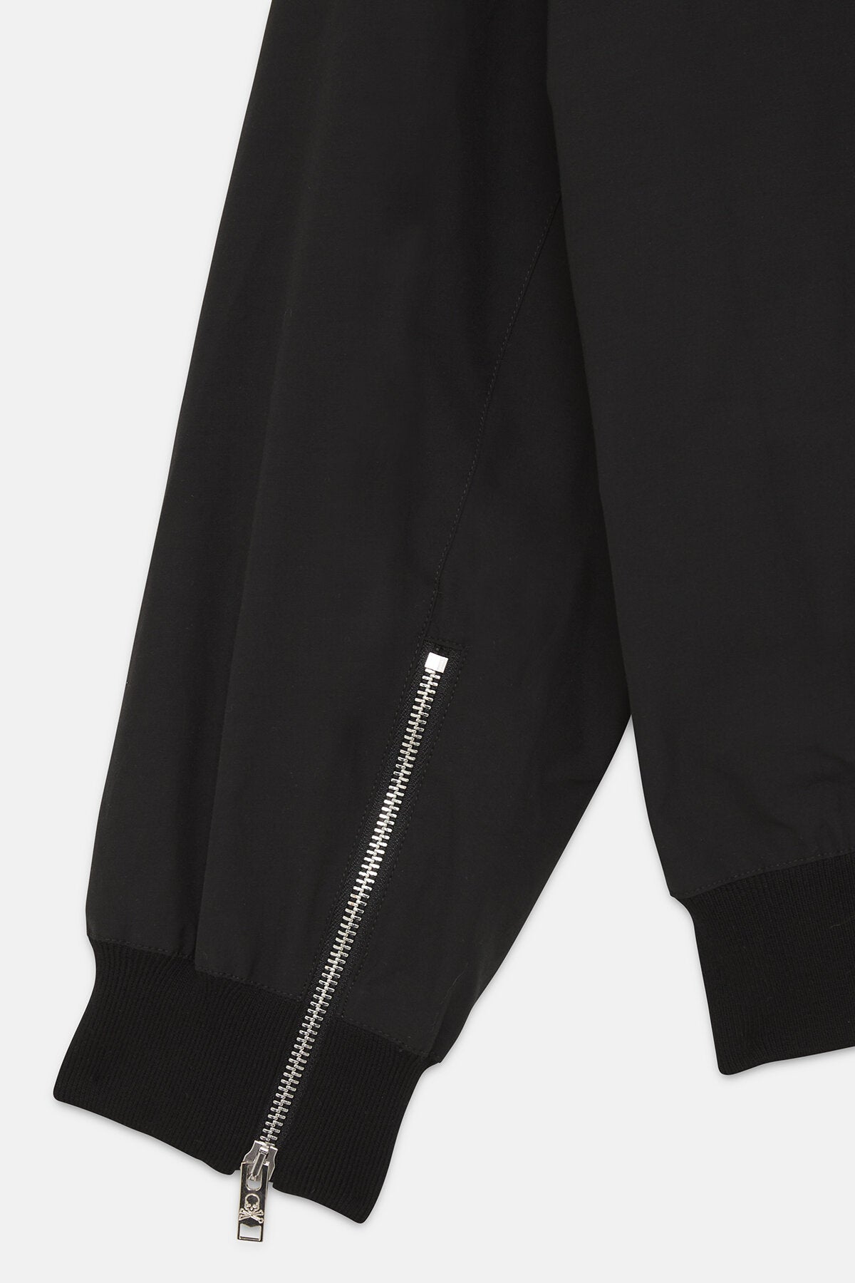 • • Zip su ciascun polsino con teschio ricamato che rimane nascosto