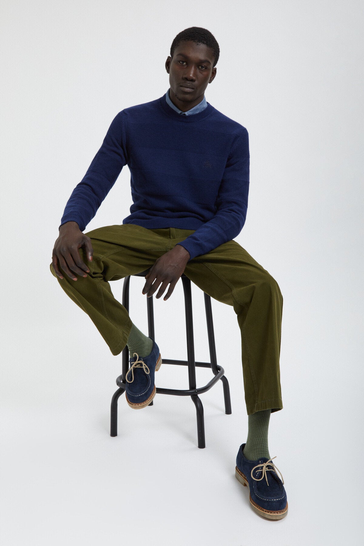 • As we are continuously taking steps to become more sustainable, our Knit Crew Neck is made of recycled wool and cashmere. The links stitch and stockinette stich both give the jumper elasticity and softness. This jumper has strength, wear resistance, flexibility, comfort and a good stretch. The garment is embellished with our tone-on-tone Baracuta logo. Wear it with our Terence Waxed Long Jacket for those wet and windy days, or our G9 Harrington Jacket for milder days.