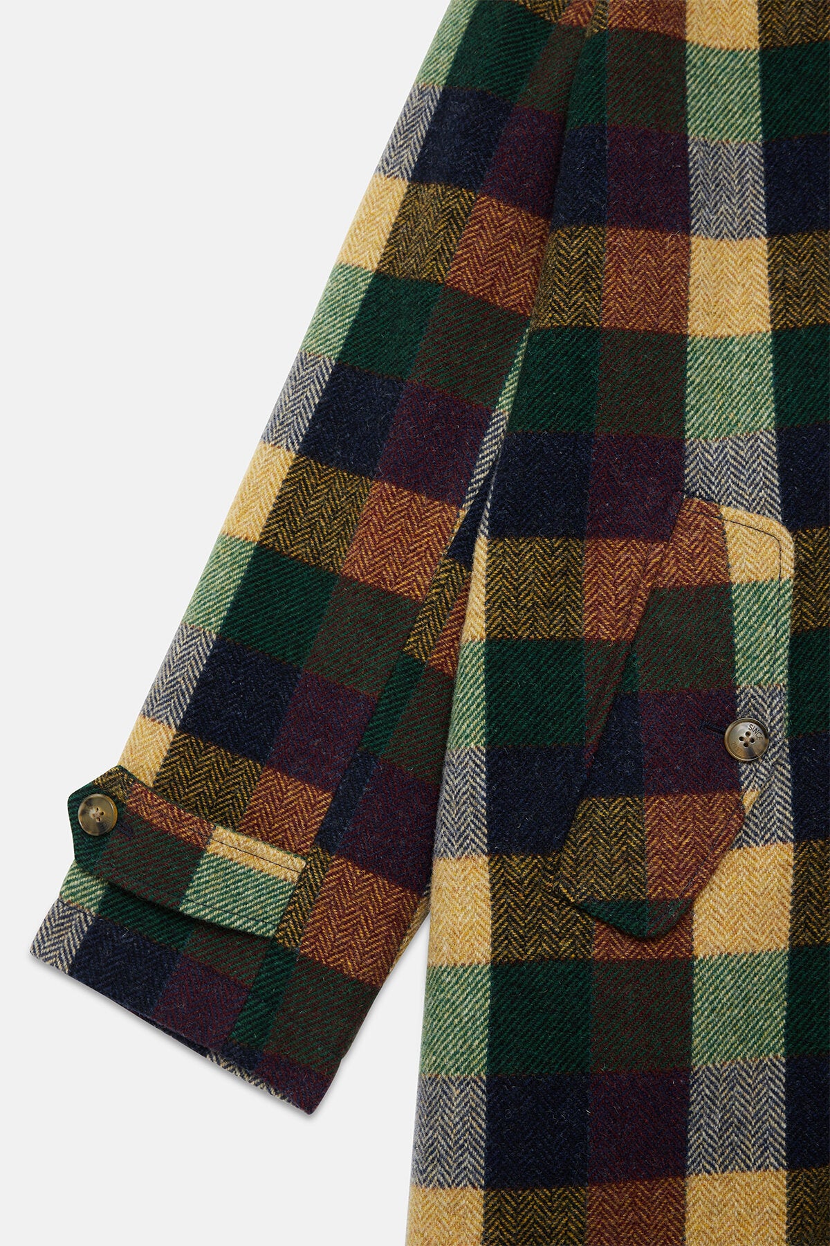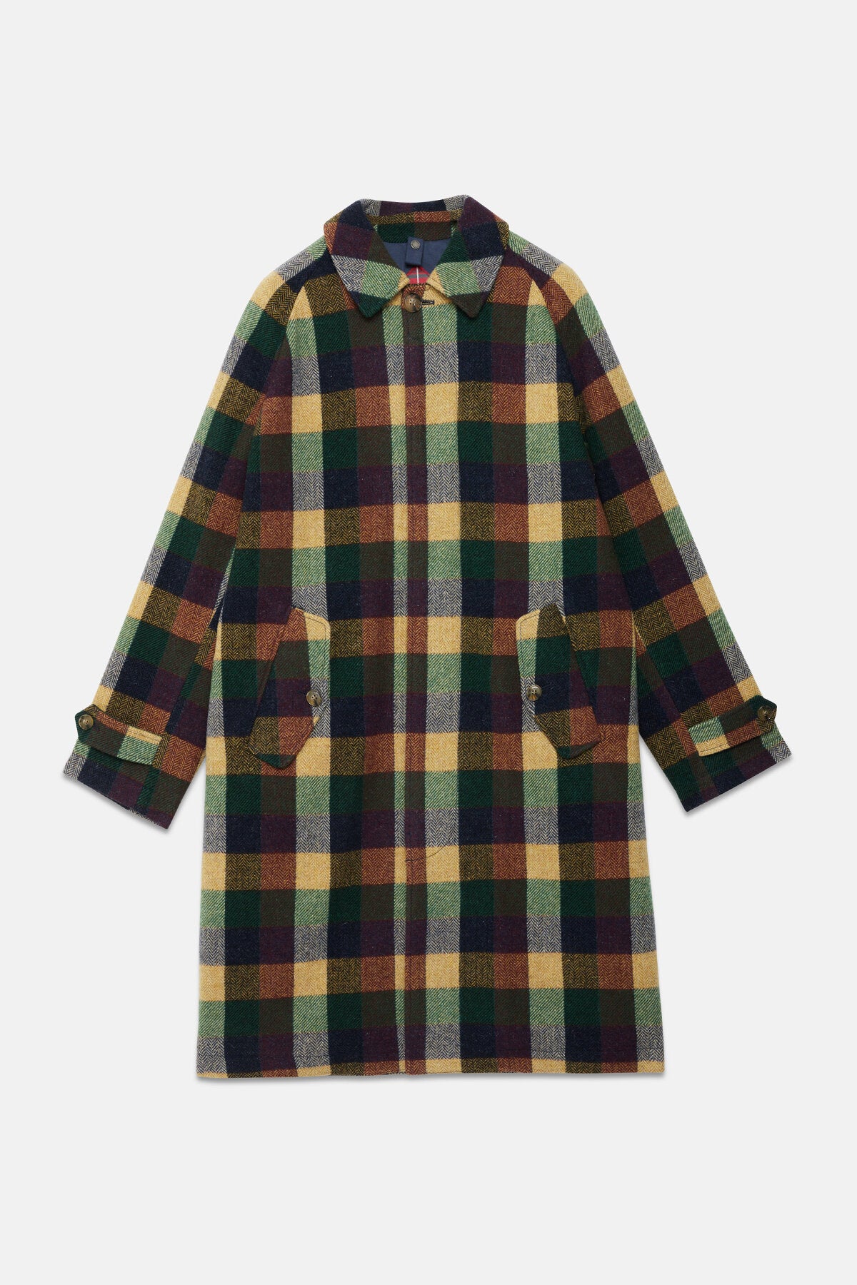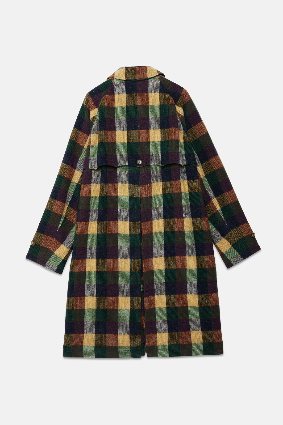 Made from 100% Virgin Wool, the Pattern Wool Raglan Coat is an oversized design that blends classic tailoring with modern style. It features an umbrella back yoke and a central hidden button closure, along with a single button at the shirt-style collar for a refined look. The raglan sleeves provide a relaxed fit, while adjustable wrist straps add a customisable touch. With two front slanted pockets with button and flap closures and a back slit for ease of movement, this coat offers both practicality and sleekness for effortless everyday wear.