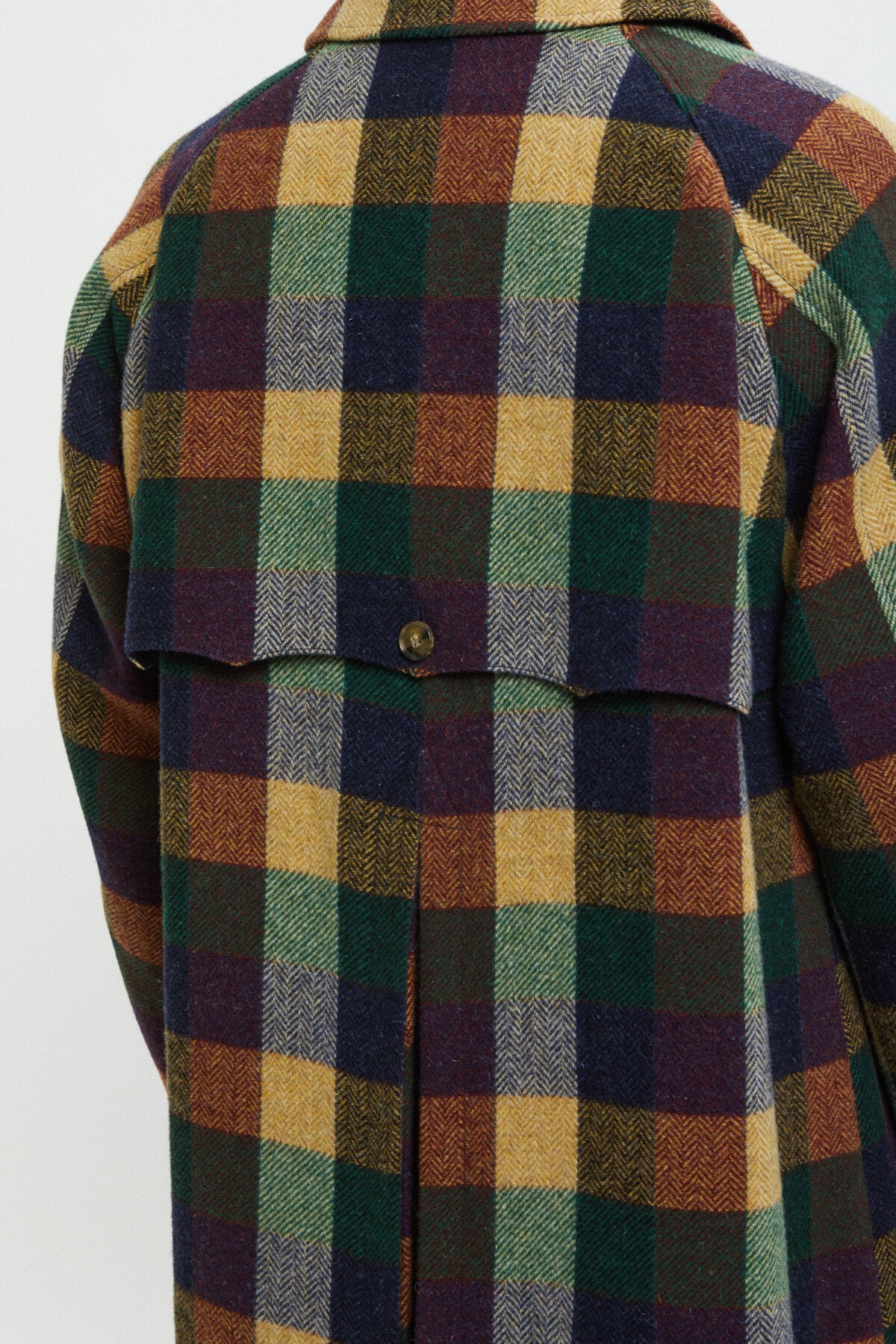 • Made from 100% Virgin Wool, the Pattern Wool Raglan Coat is an oversized design that blends classic tailoring with modern style. It features an umbrella back yoke and a central hidden button closure, along with a single button at the shirt-style collar for a refined look. The raglan sleeves provide a relaxed fit, while adjustable wrist straps add a customisable touch. With two front slanted pockets with button and flap closures and a back slit for ease of movement, this coat offers both practicality and sleekness for effortless everyday wear.